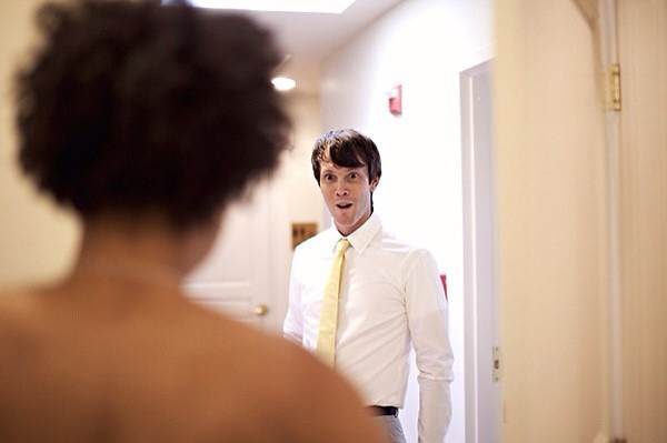 西式婚礼有一个传统——婚礼前新娘的婚纱不能让新郎看见,否则会招来厄运。虽然听起来迷信,但其实这种做法反而会给新郎带来十足的惊喜。摄影师米歇尔·纽厄尔和很多摄影师都记录下了新郎第一次看到新娘身披白纱样子时不能自已的表情,有的惊喜地大叫,有的一时语塞,更有的,直接被新娘美哭了。