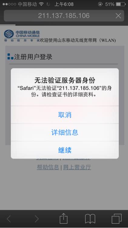 求大虾指点!链接CMCC edu时提起无法验证服务器身份!