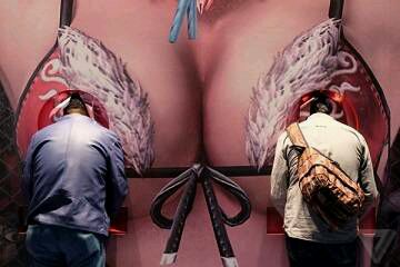 【日本游戏公司出新招:玩家需将头埋入巨乳中】美媒报道,近日,在东京电玩展上,一家游戏商的摊位前,游戏主人公阿雅(Aya)的巨幅海报赫然醒目。海报中阿雅的巨乳下设有几个洞口,想对新游戏先睹为快的玩家,必须把头埋进洞口才行……