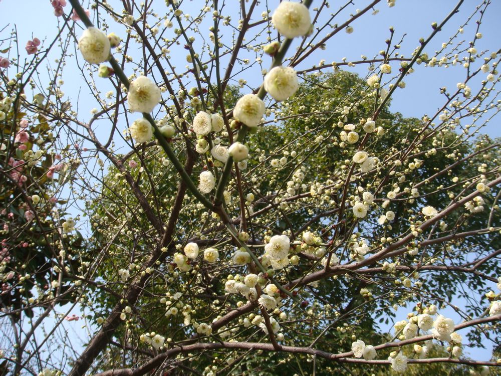 休闲苑内一树双色的梅花,这是今年正月开的。