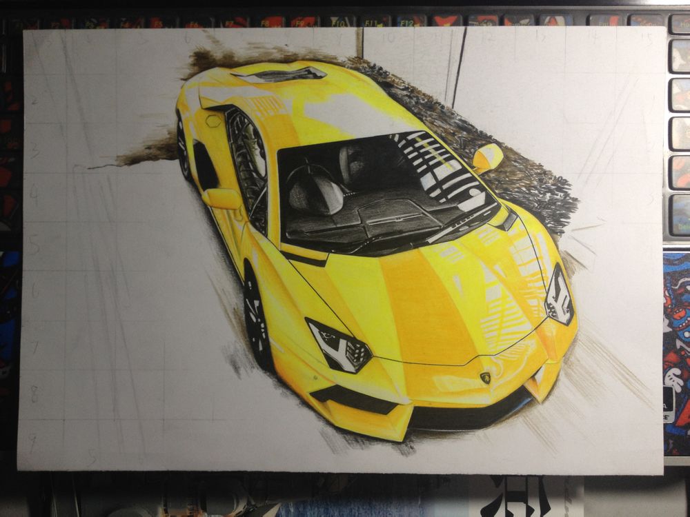 回复 贱婊万人捅_ :小方格辅助打型用的,全画没用到马克笔,彩铅加0.5水性笔