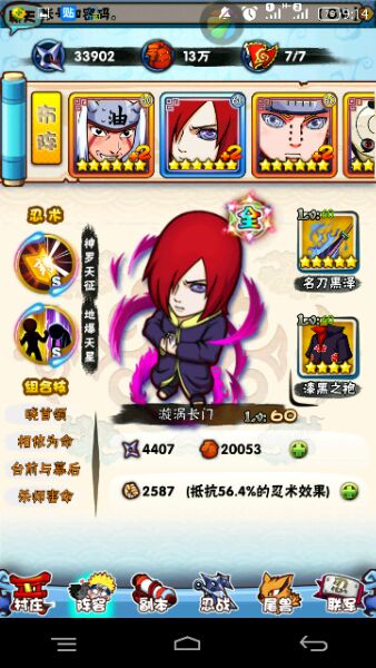 自来也、长门打头 体术都满级 长门地爆加免疫 或者双地爆 数值太低了 这数值现在打试炼上120难
