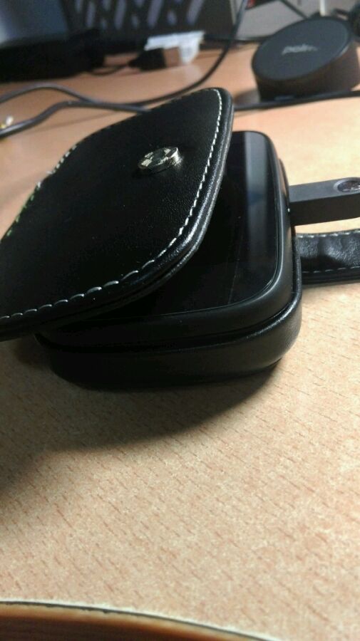 于是二逼的楼主自己动手把皮套给改了下。简单说把那个带子拆出来拉出一点再缝起来,于是就成了这样