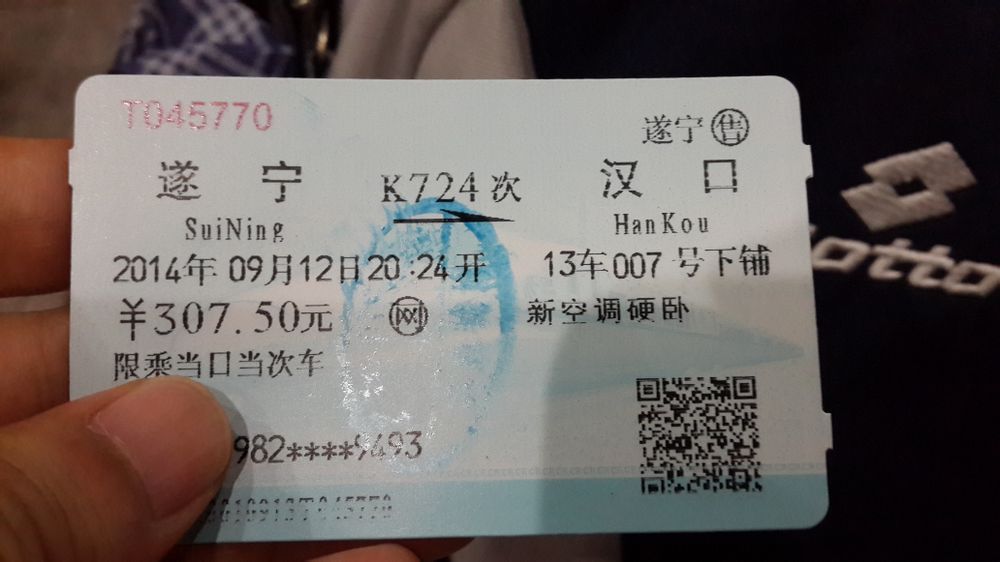 一楼车票。9.12日周五晚上出发。