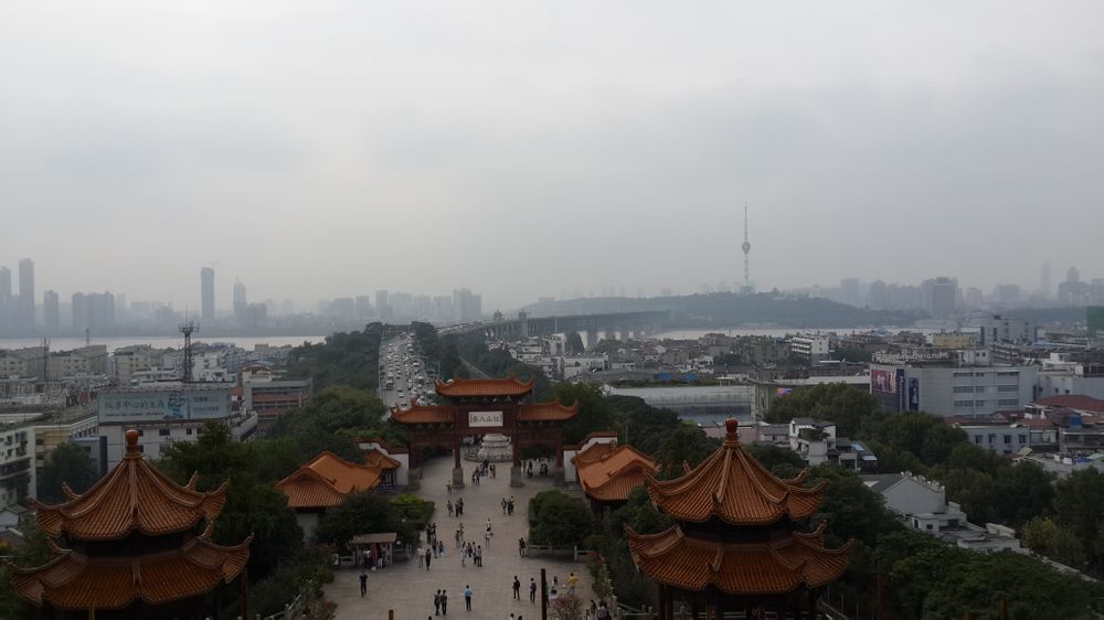 再上一张3楼的黄鹤楼,就是右前的亭子处可以近距离观赏来往的火车,黄鹤楼下的火车来往十分频繁。