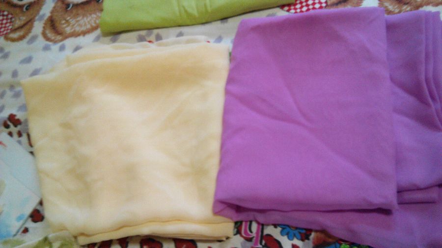 黄色原价十四一米,有很多米。十三一米出。。。。。紫红色雪纺纱原价7块一米。有四米25粗