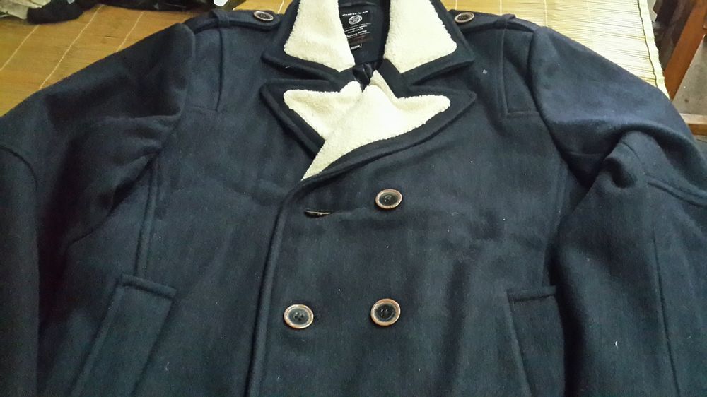 不多说上图 成色相当新 去年的款 买大了没穿两次就塞衣柜 加上现在又瘦了 除了放衣柜有点皱 成色95新往上 没洗过 衣服很精致 去年官网海报款 藏青色 纽扣有刻字 毛领 185xl的码 不偏码 适合183往上 大四狗只求速出清衣柜啊。。。1L更新价格