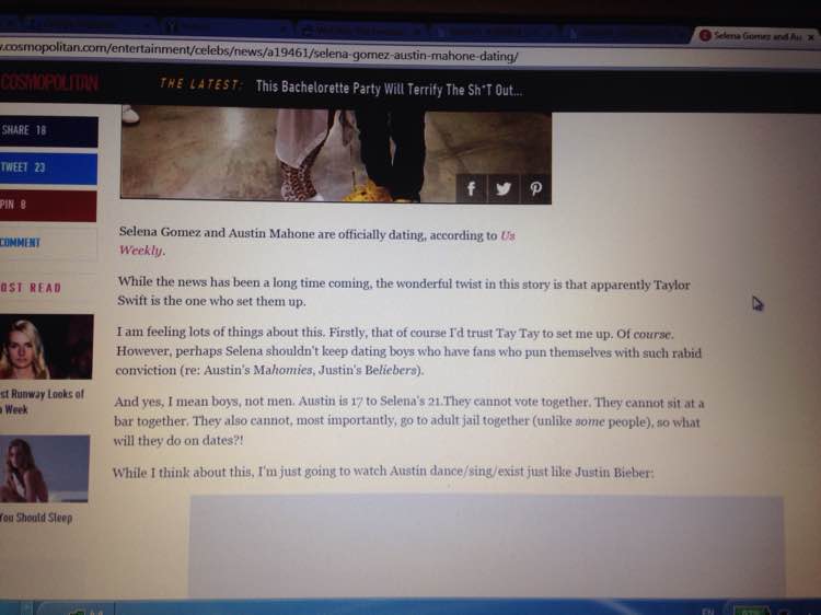 是的,我的意思是男孩,不是男人。奥斯汀是17到赛琳娜的21.They不能投票在一起。他们不能在一个酒吧坐在一起。他们也不能,最重要的是,去成人监狱在一起(不像某些人),所以他们会怎么做?日期