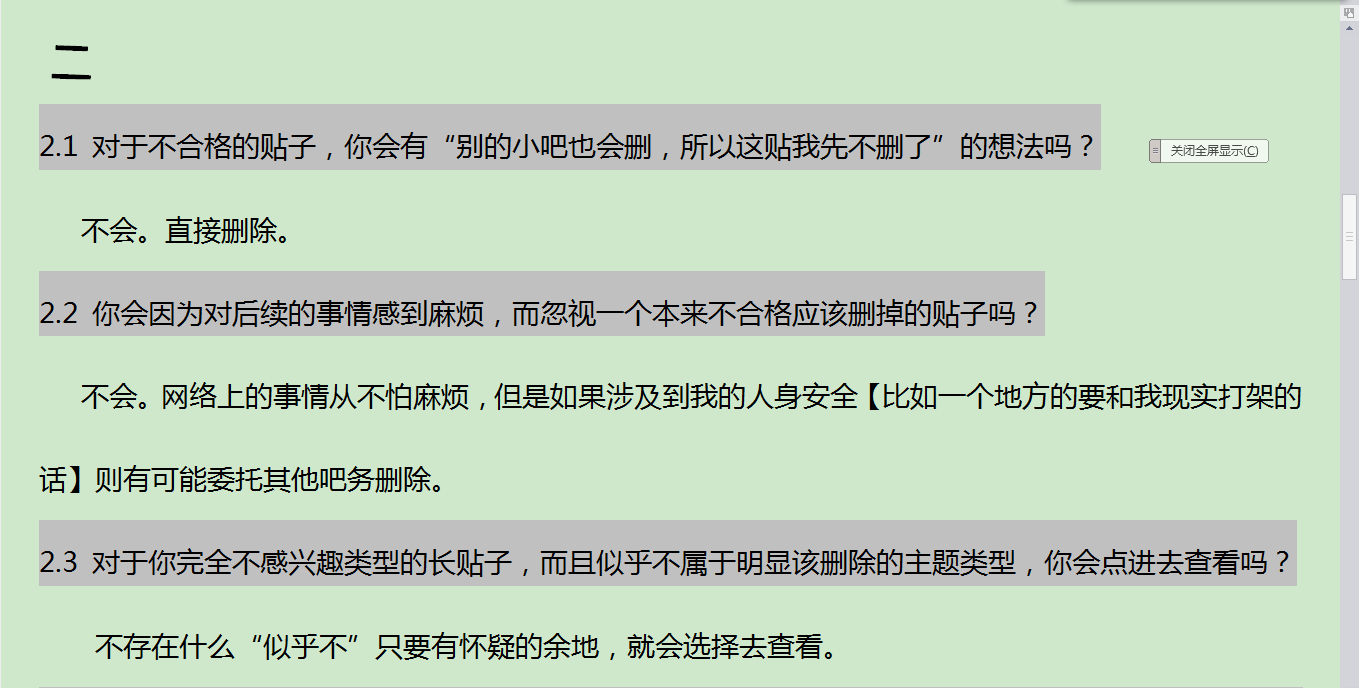 2.2 你会因为对后续的事情感到麻烦,而忽视一个本来不合格应该删掉的贴子吗?