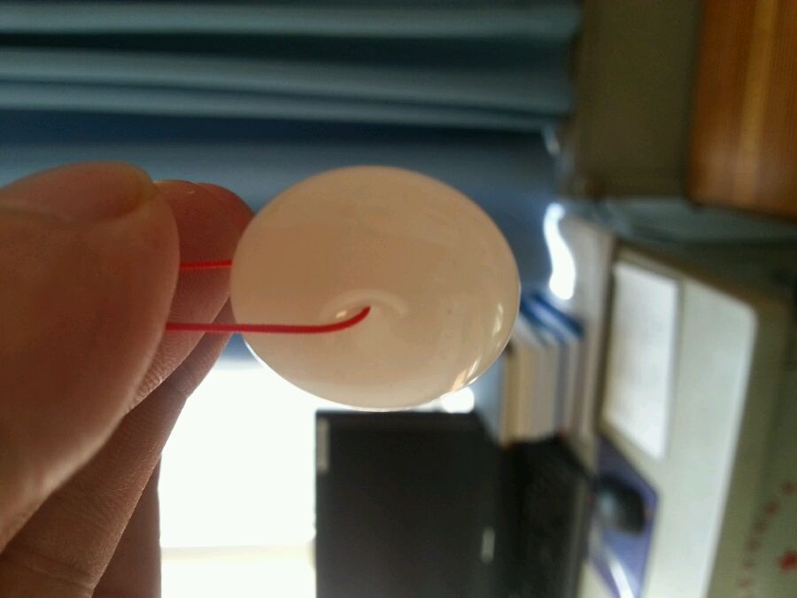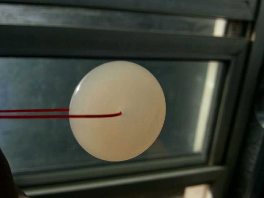 给小孩子带在脖子上的,怎么拴挂绳呢,看着简单实用的。青海料糖白平安扣,保平安咯