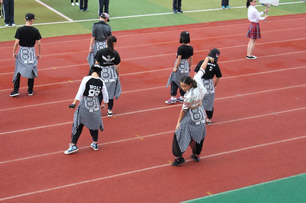 高一13班的激情表演为我们在田径场上竞争的运动员们注入了一股动力