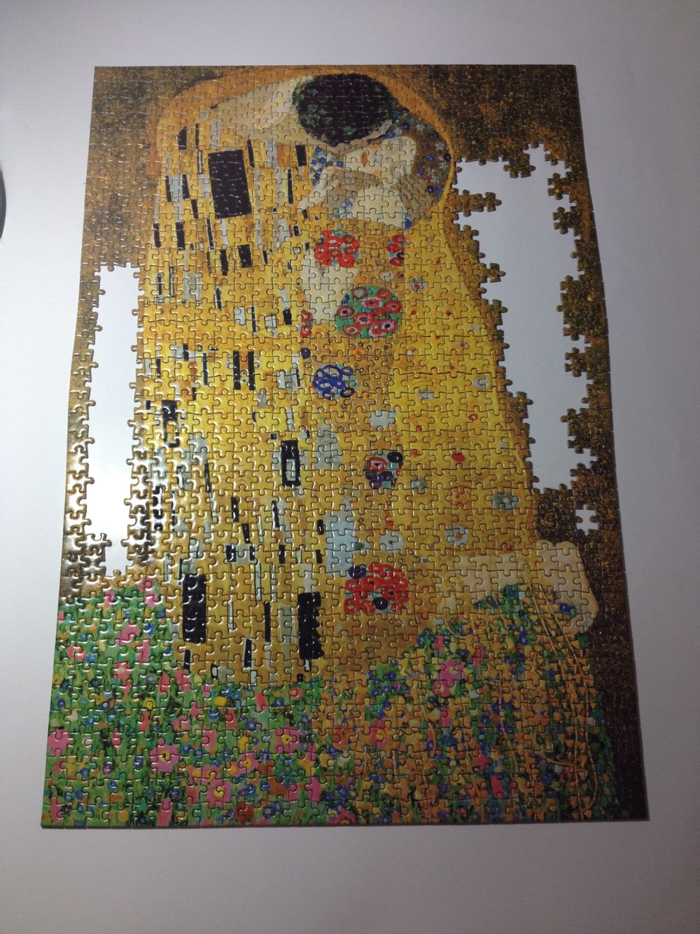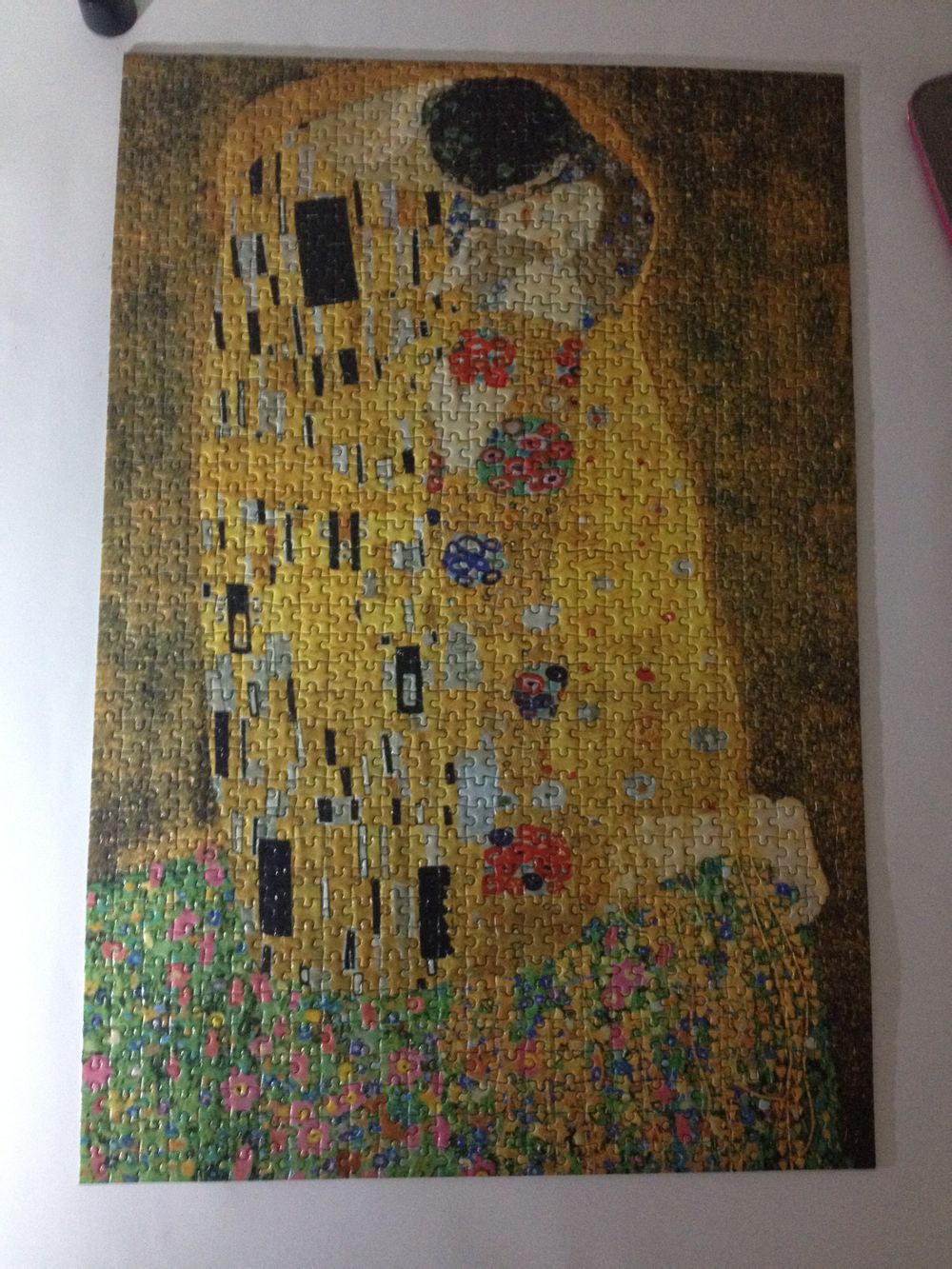之前无意中逛到拼图吧,被各位吧友的作品迷住了,后来正好赶上生日,心想自己给自己犒劳一下吧,于是淘了2副拼图,都是epoch的,1053迷你片,一幅是克林姆特的“吻”,另一幅……我叫她“猫之吻”。自己觉得手脚挺快的,每天2、3小时,基本一个星期搞定。下面晒图:
