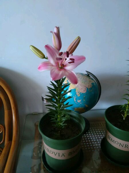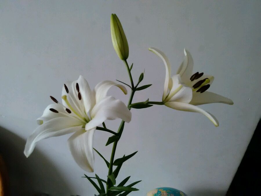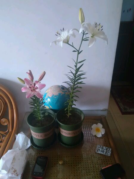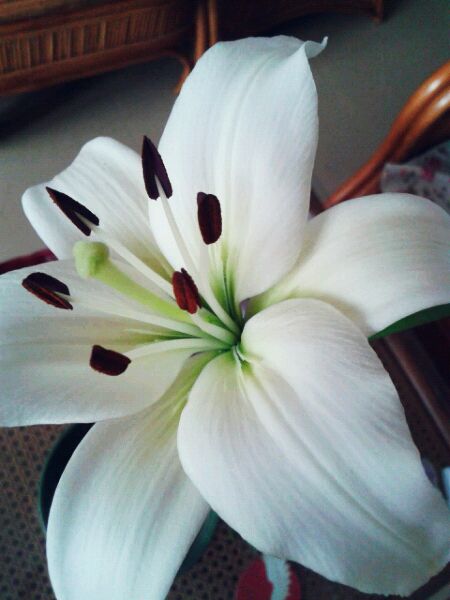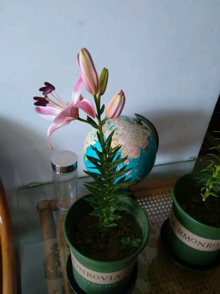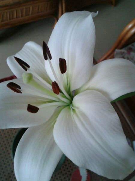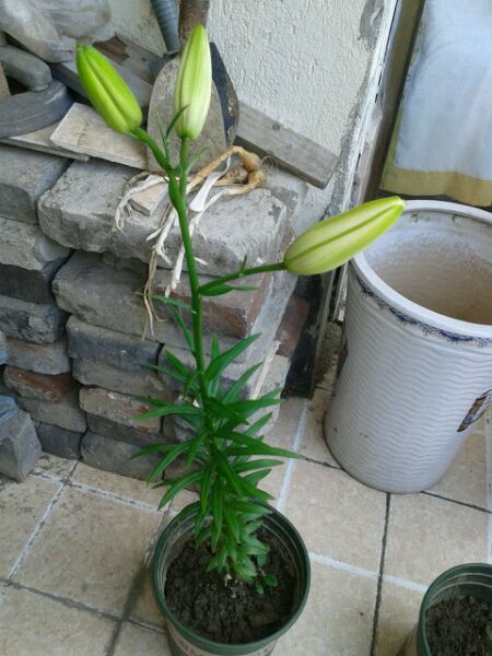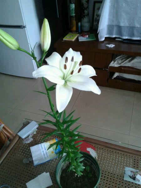 居然开惹,昨天还是骨朵儿呢 ,必须晒晒,哈哈,这个是亚洲百合,品种是“白天使”