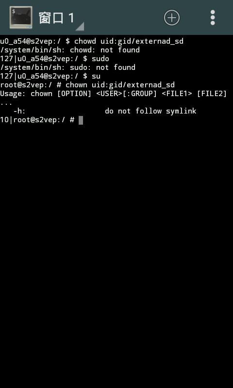 。。。。。。。 uid和gid指的是用户system在你系统中的id和组sdcard_rw在你系统中的id。如果不知道id,可以尝试chown system:sdcard_rw /external_sd