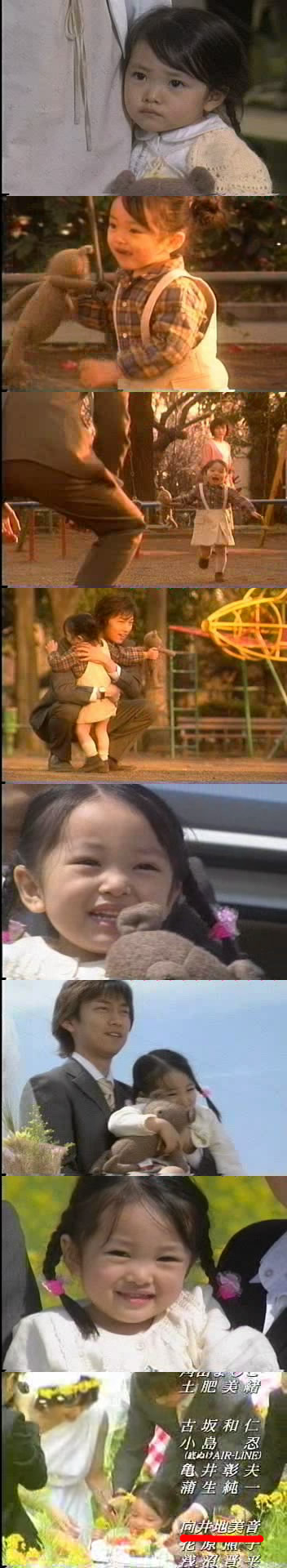 姓名:向井地 美音罗马字:MUKAICHI MION性别:女诞生日:1998年1月29日星座:水瓶座身高:120cm出身地:琦玉县特长:钢琴作品:TV NHK「利家とまつ」 初姫役 =<利家与松> 初姬日本テレビ「働きマン」 山口美咲役 =<工作狂人> 山口美咲フジテレビ「フライトパニック」 柳本メグミ役 =<九霄惊魂> 柳本惠「パパの涙で子は育つ」 川村カヤ役 =<爸爸流泪养育孩子>川村加悦 「アンフェア」 佐藤美央役レギュラ=