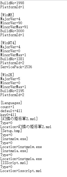 然后打开setup.ini文件,将其中的尪椨咱昉彨孯2.msi改为刚才复制的文件名,也就是幻燐之姬将军2.msi