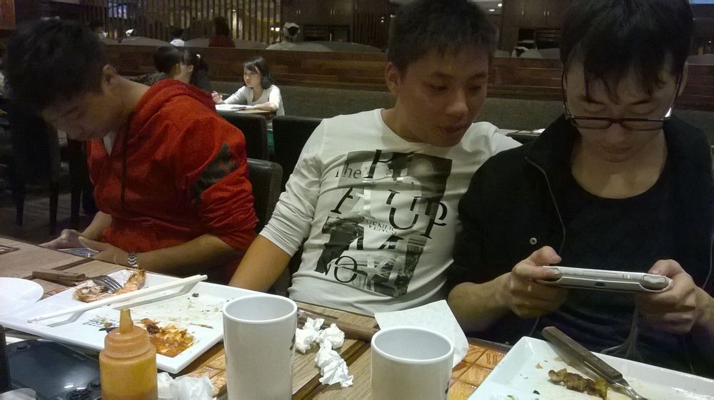只见低头党。