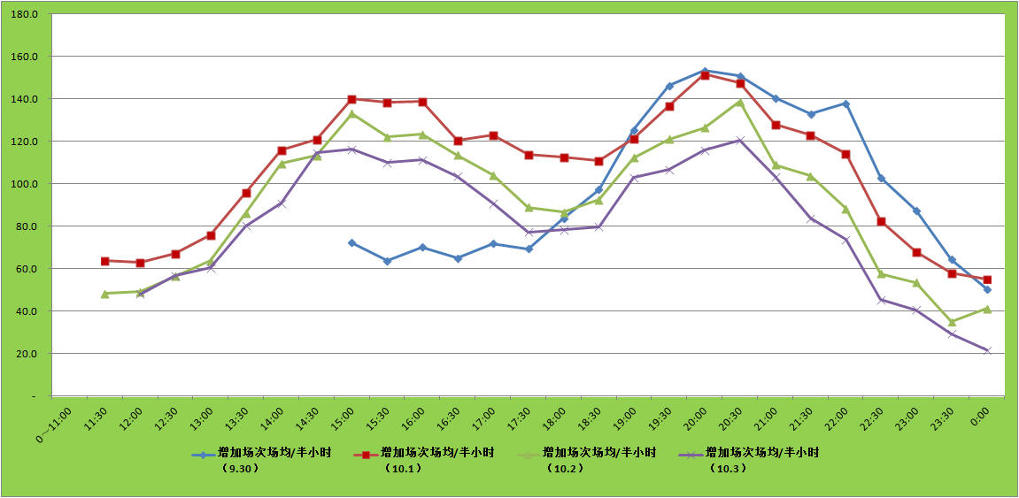 单位时间内(半小时)观影人次比较: