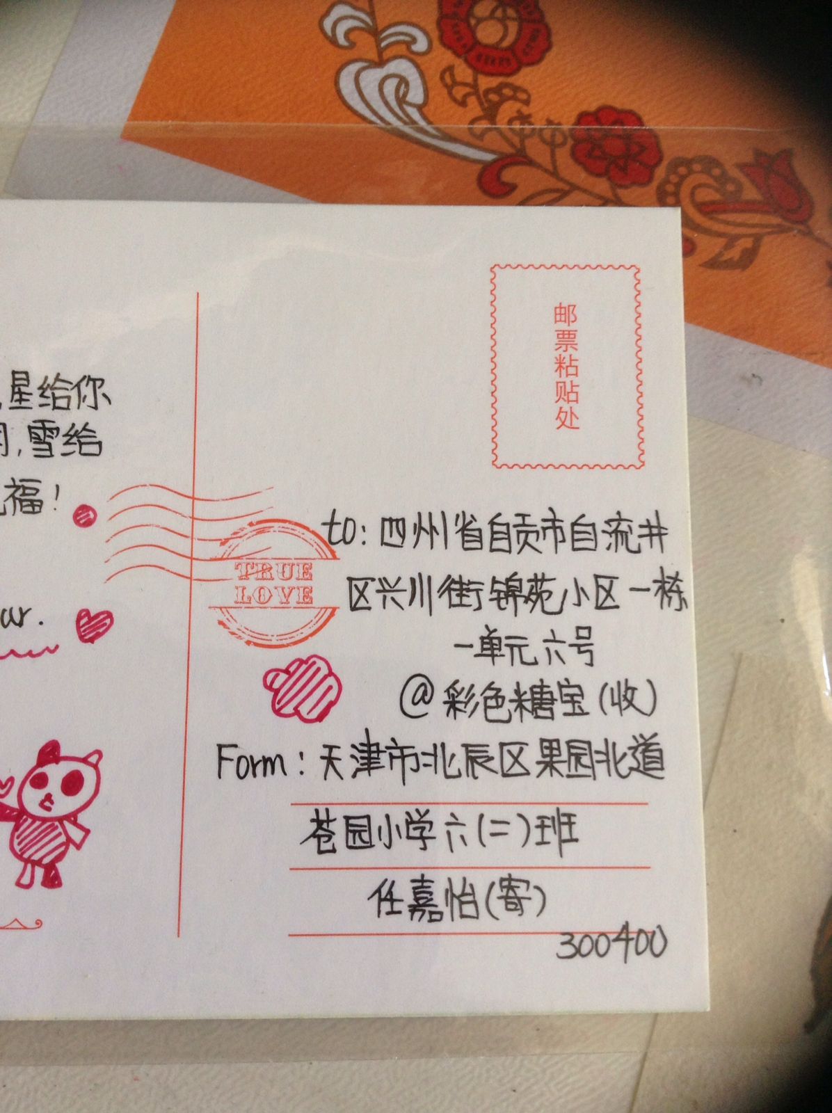 来,明信片己写好,请检查一遍