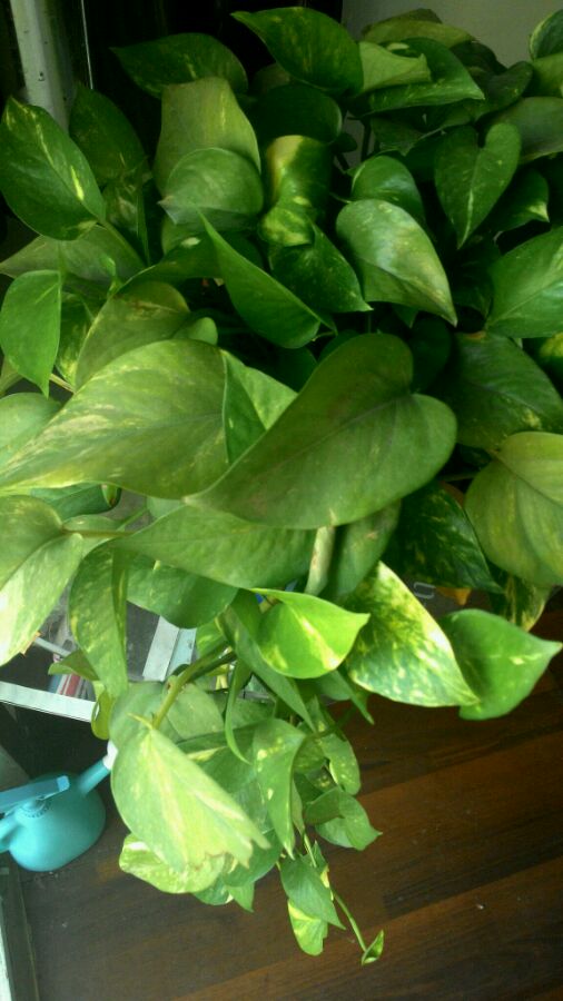 这是绿萝的一个品种,叫黄金葛,新叶会长出不同规则的斑块或条纹,十分好看。