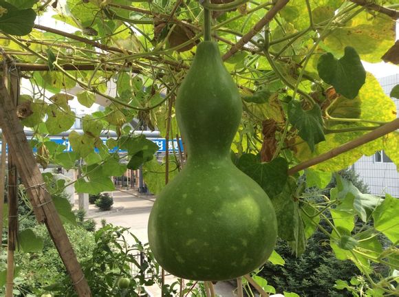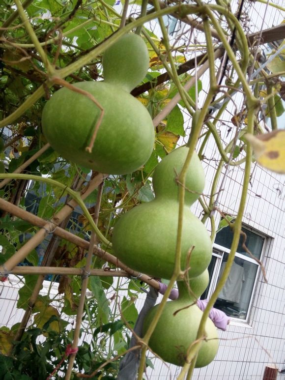 今年种了两棵葫芦,一种是亚腰,一种是宝葫芦,都是一个葫芦里取的种子