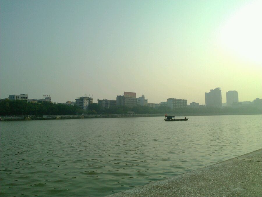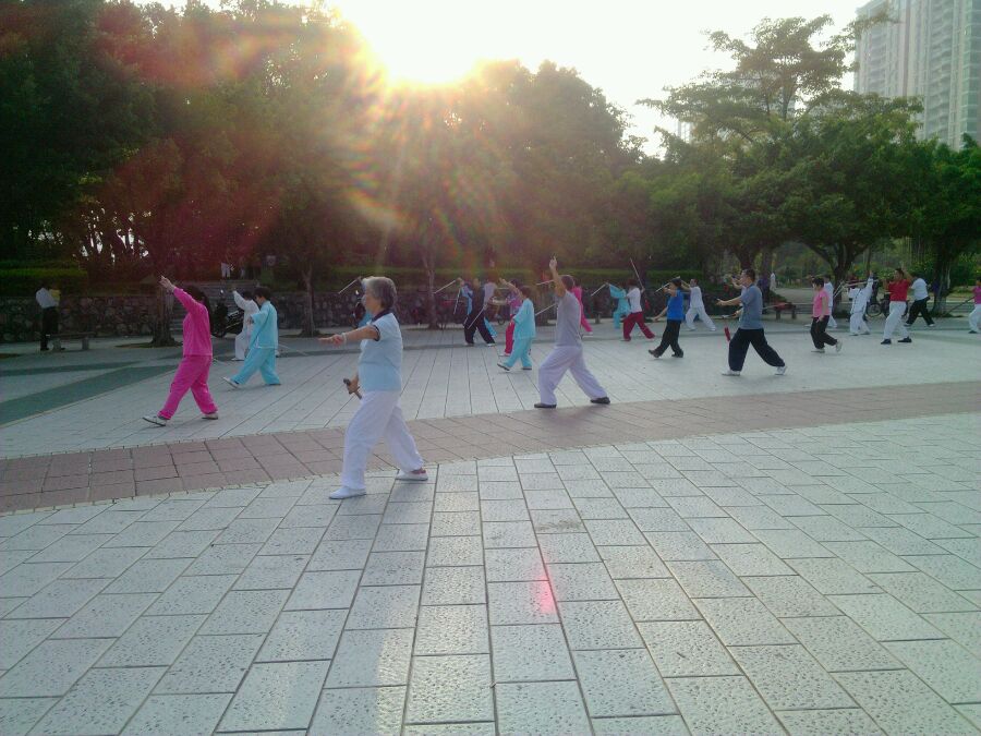晨练的爷爷奶奶、 湖面的小船 早上还有些许凉意