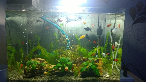 求大神来点改进意见 有三十条小鱼 三合一过滤 只留下了过滤功能 还有一个氧气泵