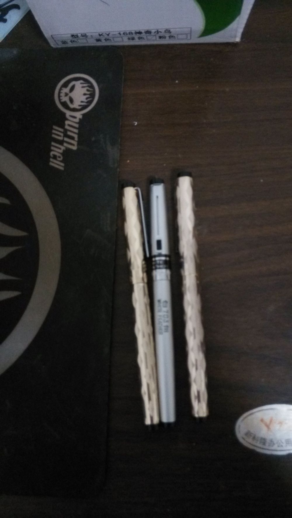 到手后加水,测试后感觉两支金色的都很好用,银色的有一支划纸,还没老板送的那支好用。