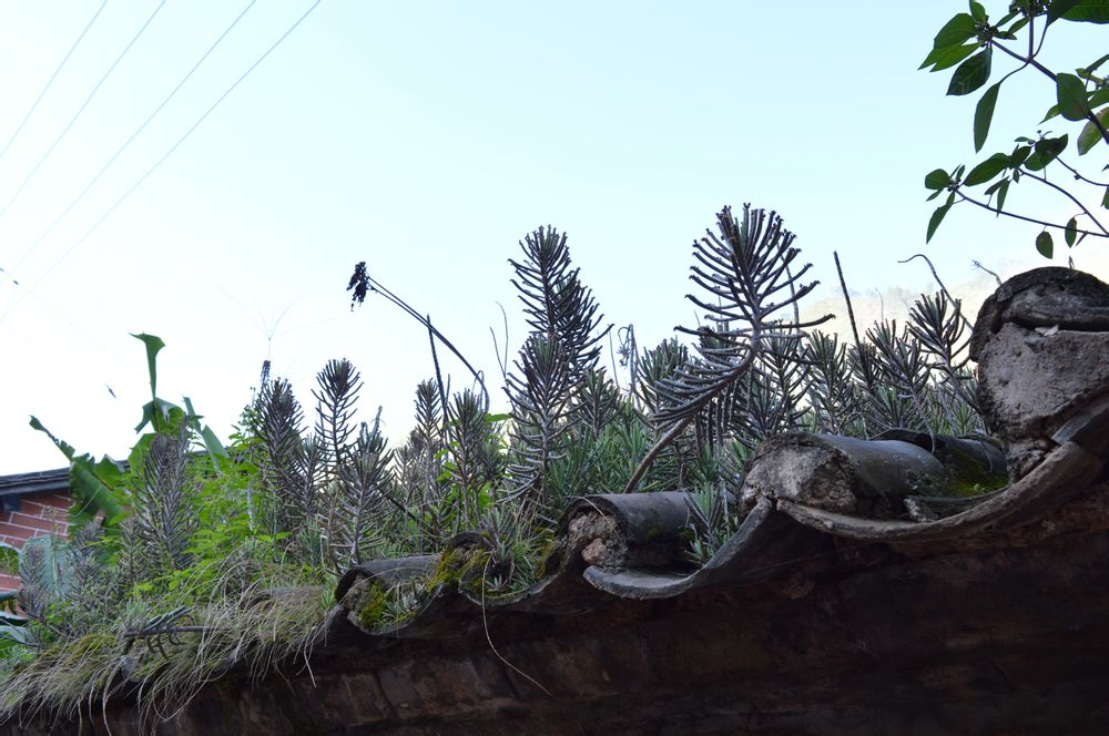 古镇小巷屋顶上随处可见疯长的不死鸟