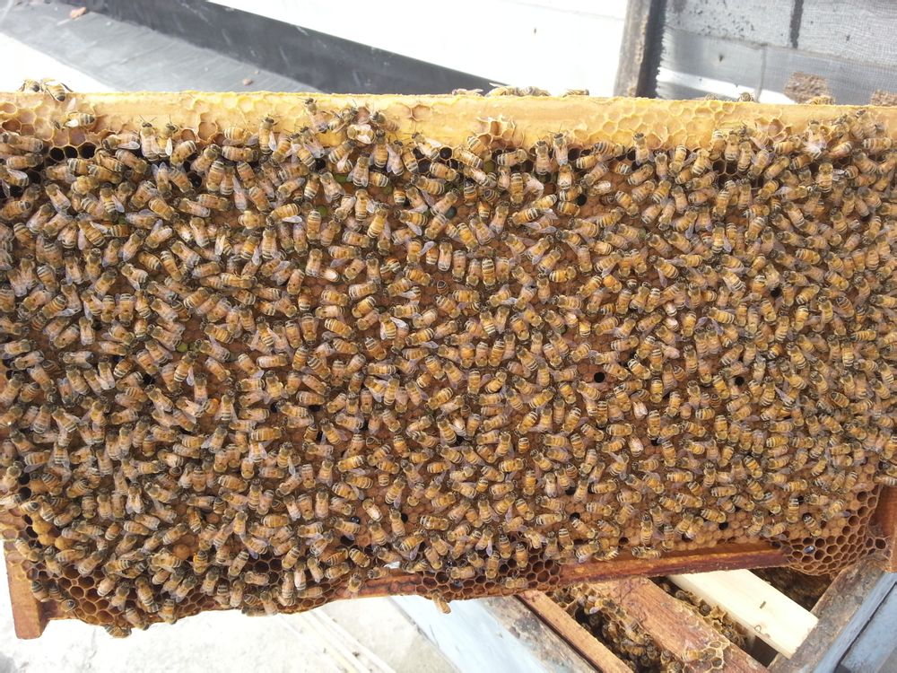这是我好的一张脾,这种满脾的只有2张,还有2张一半子脾的,2张少量卵的,蜂不足。。。。很悲惨
