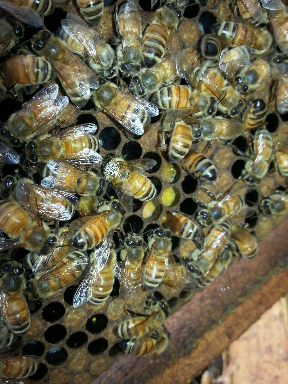 师傅,巢础已经加了一个星期了,上面都产卵了,看着卵还不少,过5,6天就能封盖了,现在感觉蜂有点不足,悲剧