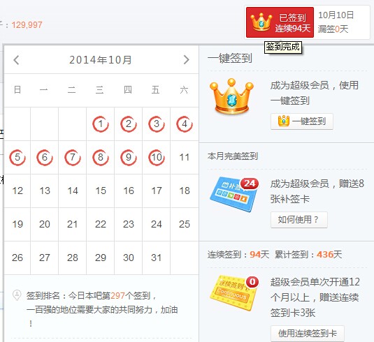 一不留神断了,貌似现在是连续签到94天,但是94天0发言