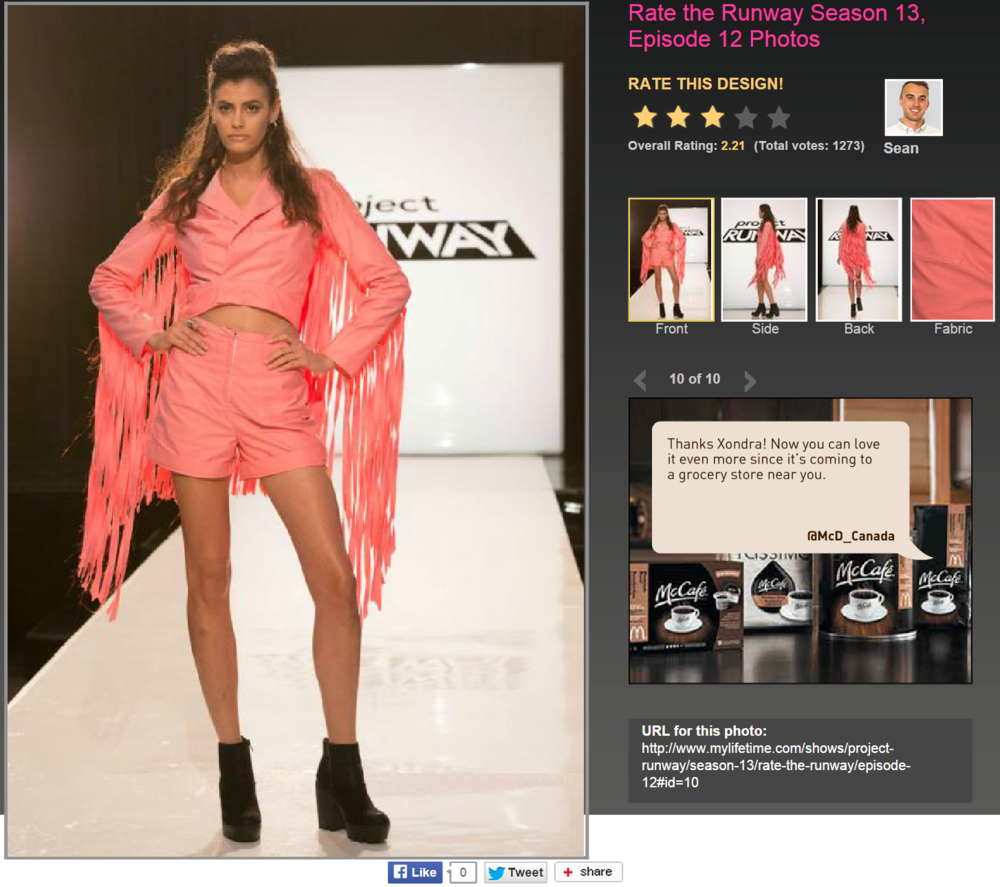 12集结束了,补完了录下来的S13E12也是醉了。这一集貌似没有分数高低,只是告诉大家谁进入时装周了,咳也有可能是我忙于一边吃东西还和个西班牙鞋履设计师朋友边聊天边看没注意听。奉上美美的照片和简单点评。
