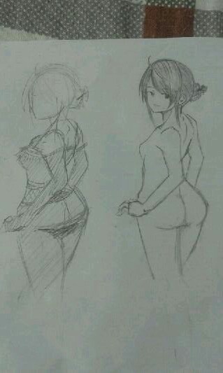 这周新画的。事情实在太多,刚刚熬夜打完的草稿。总感觉不让她穿衣服太不好了,就画了紧身一点的衣服。