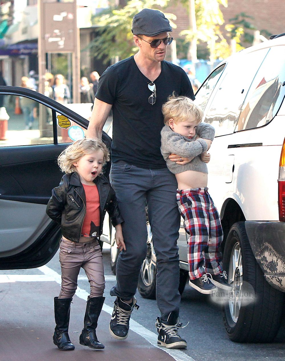 不知道他跟谁招手。一家叫的是出租车。拉到他们好星湖~另外成天给孩子们戴墨镜,总觉得对眼睛不是太好