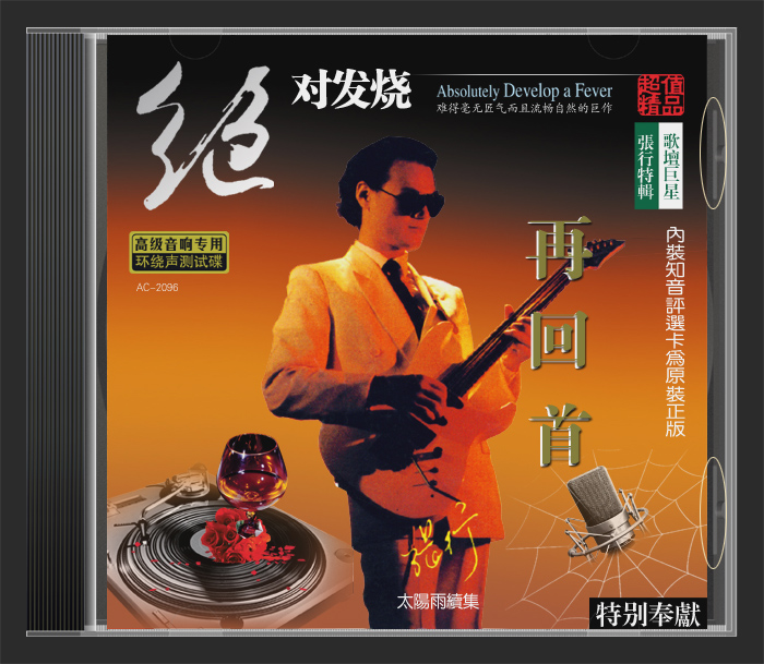 把张行《再回首》磁带封面略作修改,并按照盒底的尺寸、布置一些CD元素,打造一张CD封面,如下图