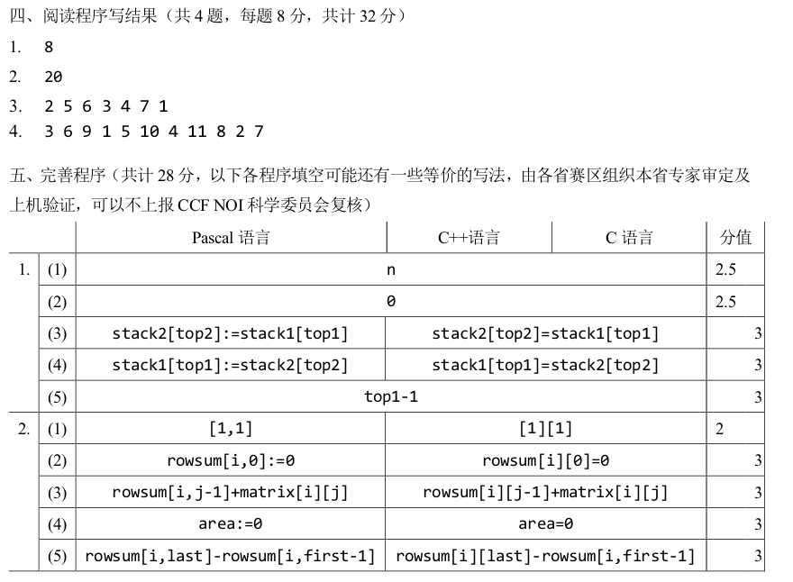 81渣渣路过。。。其实完善程序第二题的第二个空不填的话也是对的。。。所以说这题出的有点坑爹【比如就坑了我】