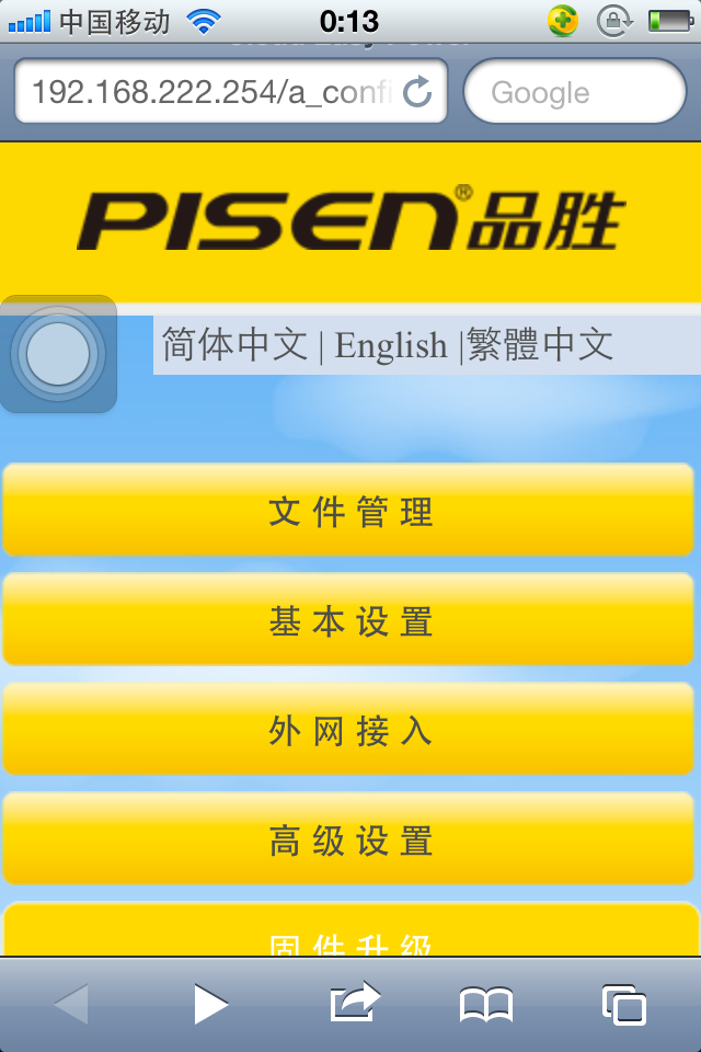 4.WiFi,无线中继,上网卡a.有线接入转Wifi功能出差也比较实用,因为之前有tplink的产品,所以知道这个也比较实用,而且不像tp的产品需要修改ip才能进入设置,略显复杂,小白的设置就极为简单直接键入地址进入修改即可