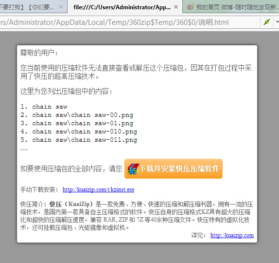 回复 C丶夜猫 :woca 神一样的快压,别的软件打开就一个说明页必须得装快压才能解压,啥玩意...
