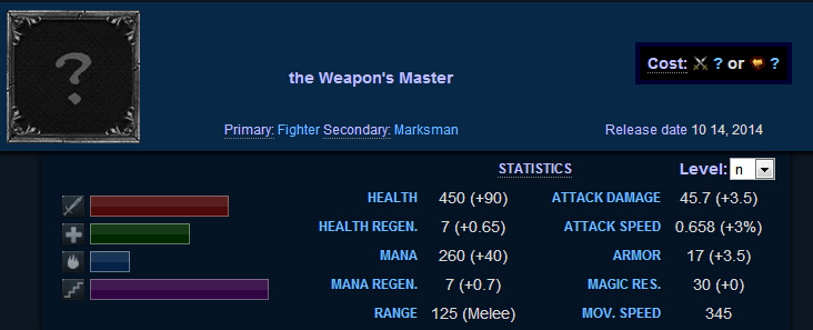 标签:战士,刺客 推出日期:2015年7月19日(连推出日期都有……)