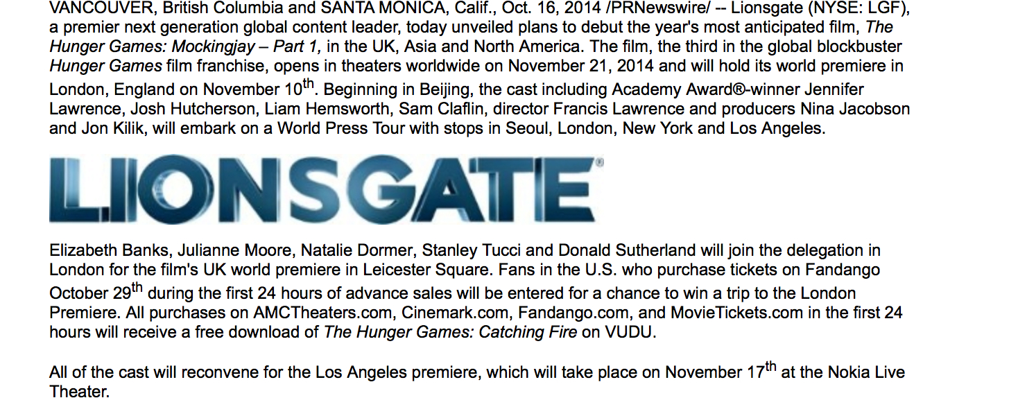 【新闻】 Breaking!!!! Mockingjay将会有北京首映会!!