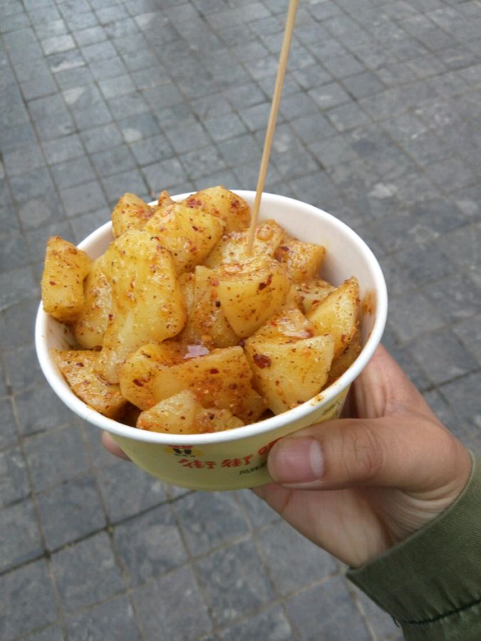 果断来了兴趣,一问20块钓5条,鱼食一小撮2块,这个价格屌丝接受不了,花了3块买了一盒炸土豆安慰受伤心灵
