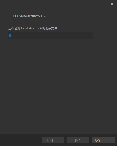 稍等,如果出现下图所示检测现存文件,就表示你已经成功地让steam识别出你的游戏文件了。