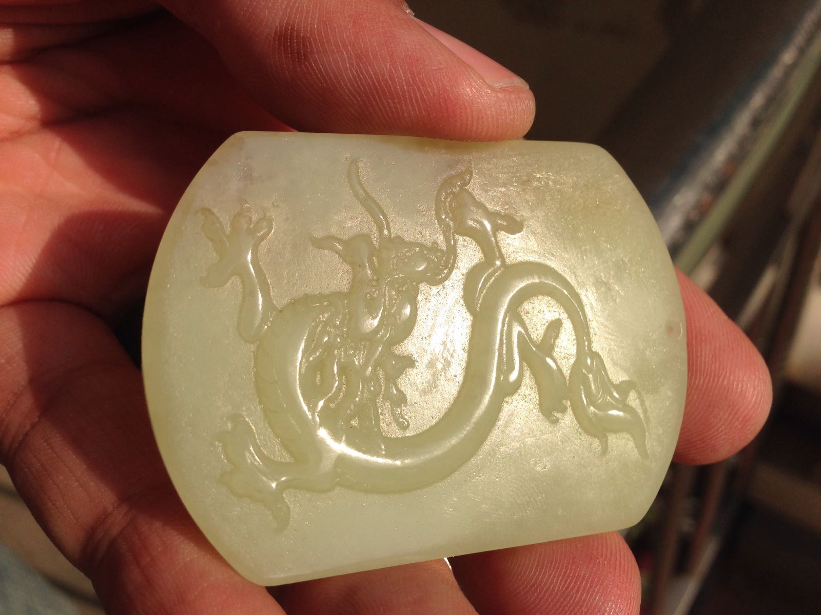 之前手机上看那另几张照片颜色发青,认为是带翠的青海玉,这回看着不那么青了,回头让