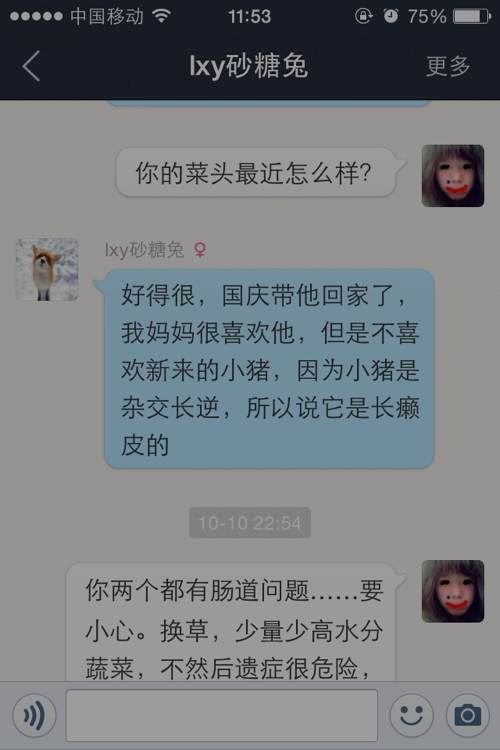 10.10日我询问菜头情况,他非常不错,祝他继续健康成长!