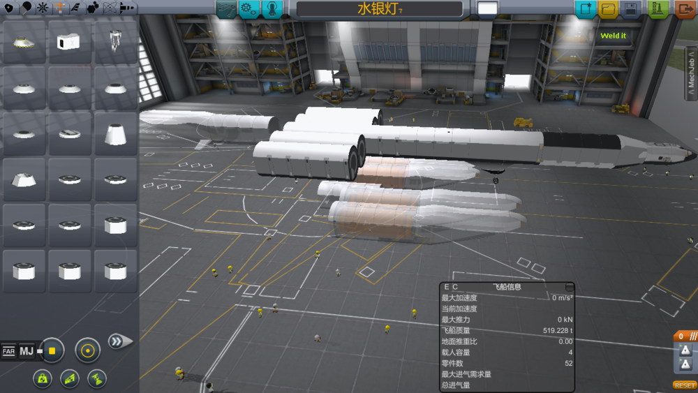 小的空天飞机还是挺好做的。。。我也做出过各种级别的小玩意,去去火星是没问题了,但是最近开了个脑洞想用空天飞机(不需要ssto)做运输船带个登陆舱去eve再接回来,想搞个200t左右的飞机就发现各种飞不起来。。。我在用pwings做机翼减少part,还有不多的一些mod,感觉上2.5m级罐子以后基本就有升力不足的感觉,双层机翼又不方便丢太空垃圾,不知道有没有好的空天飞机兼远航运输船的设计可以参考下的,谢谢啦(╯▽╰)