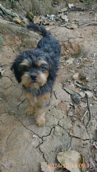 狗狗是它很小时候被我抱上山上养的。到现在快一年了。从没下过山。在山上基本是我去哪里跟到哪里。很听话的。是这个月。常常要运鸡
