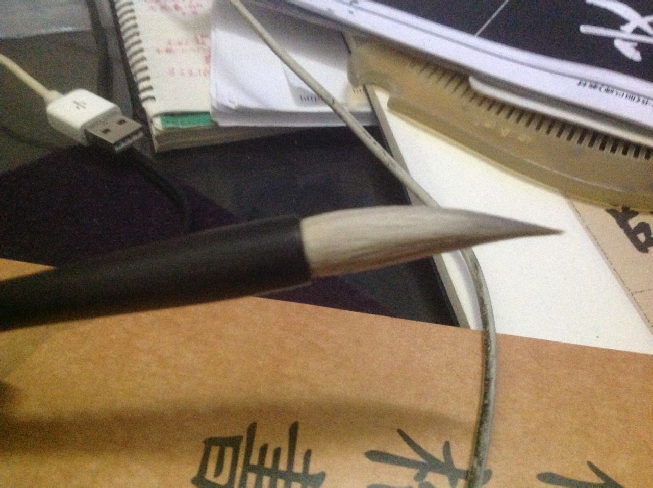前天收到某宝胡魁章的特制白鹤落山峰,看外表比较精致。今天上网看了看毛笔相关知识,开笔之后写了个立字笔就变成下图所示,还不如二十多元实体店买的健。是我买到假货了还是好的兼毫就是这样的?