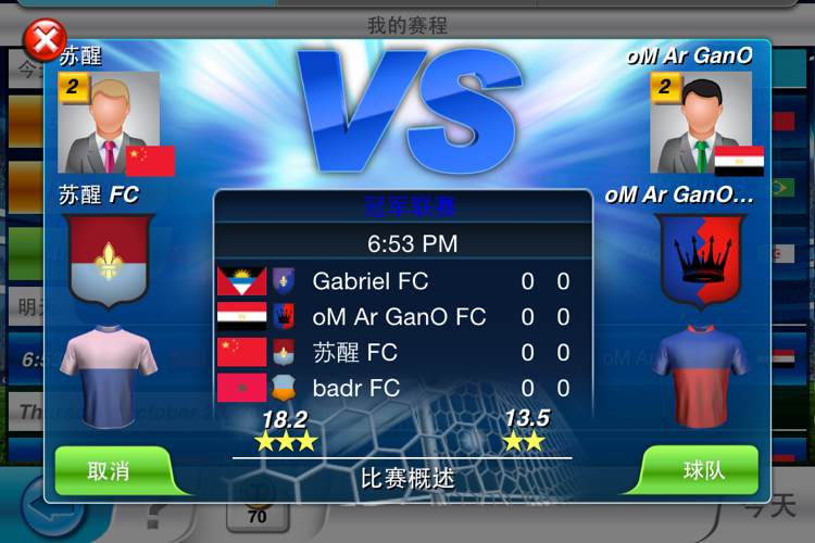 第二季的联赛开始了,分到了一个挺厉害的组,有两个初始数值就20的队伍,还有一两个和我实力相当的,第一轮的对手比我略低,但是我客场作战也没有信心赢他。