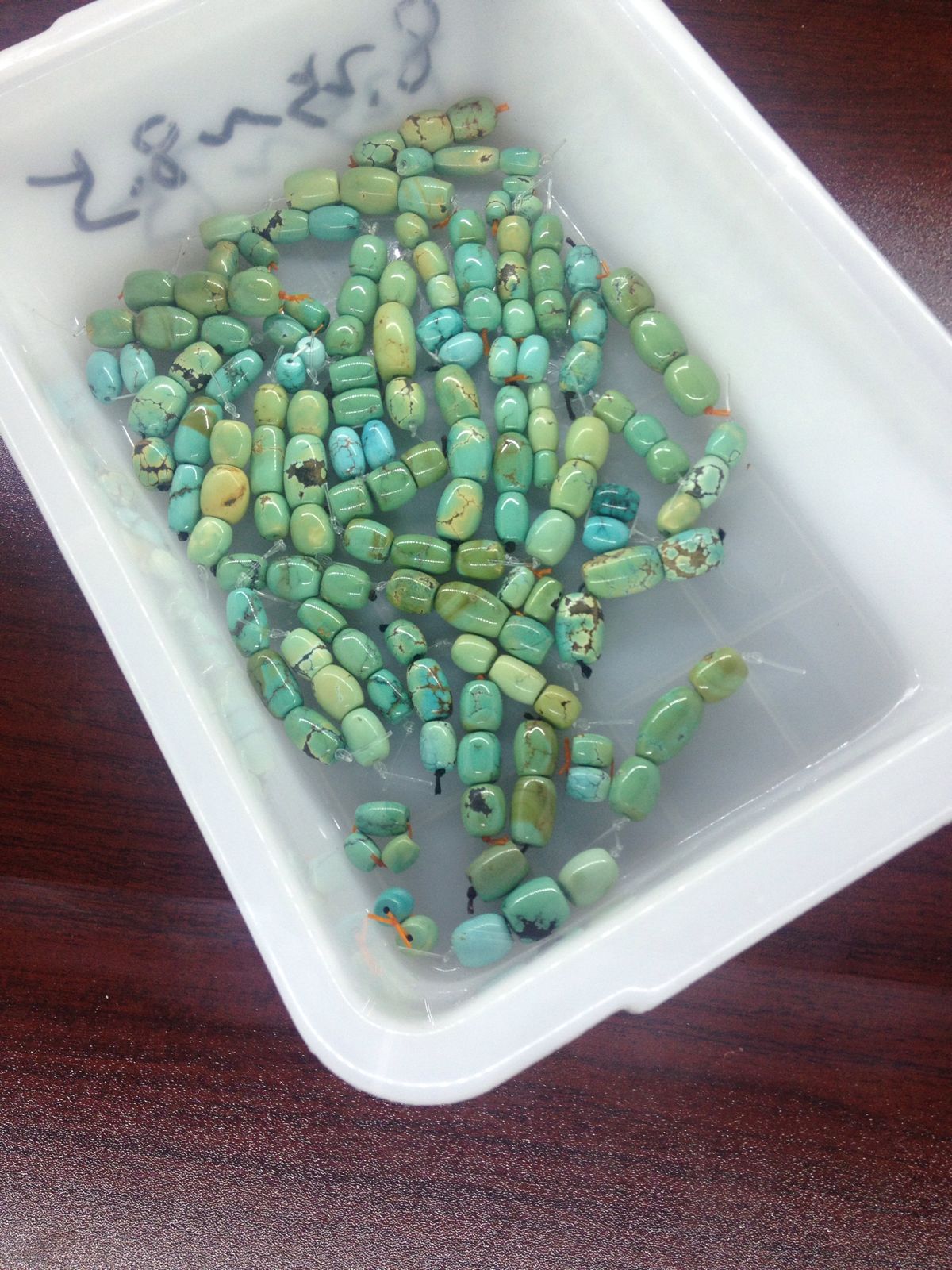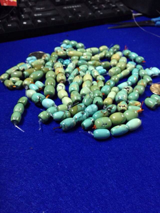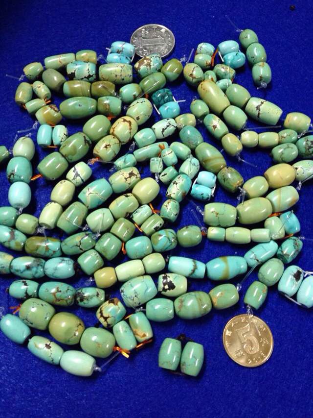原矿高瓷绿松石桶珠打对统出
